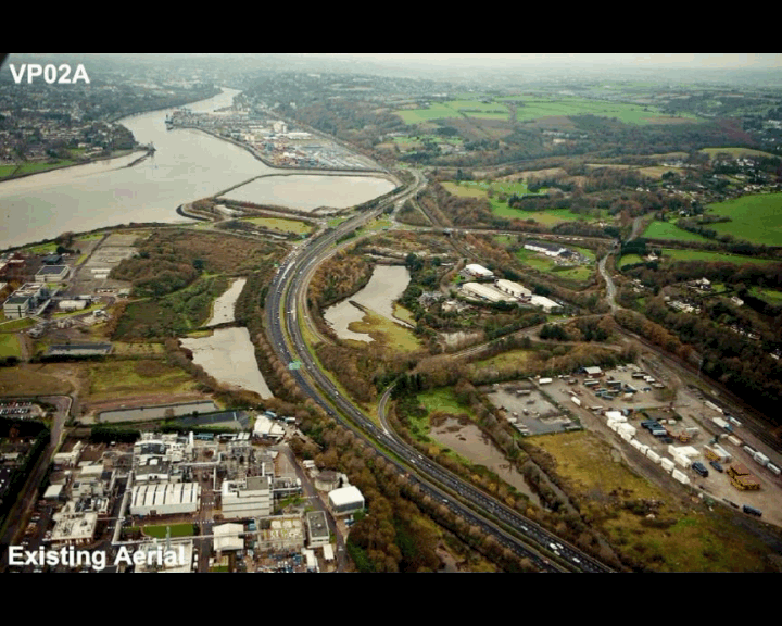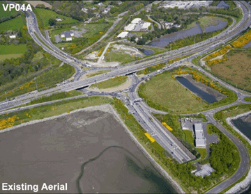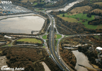 The following images are taken from the Environmental Impact Statement which gives some indications as to the changes that will occur during the works. These photomontages illustrate how the landscape will change and how the interchange will look.