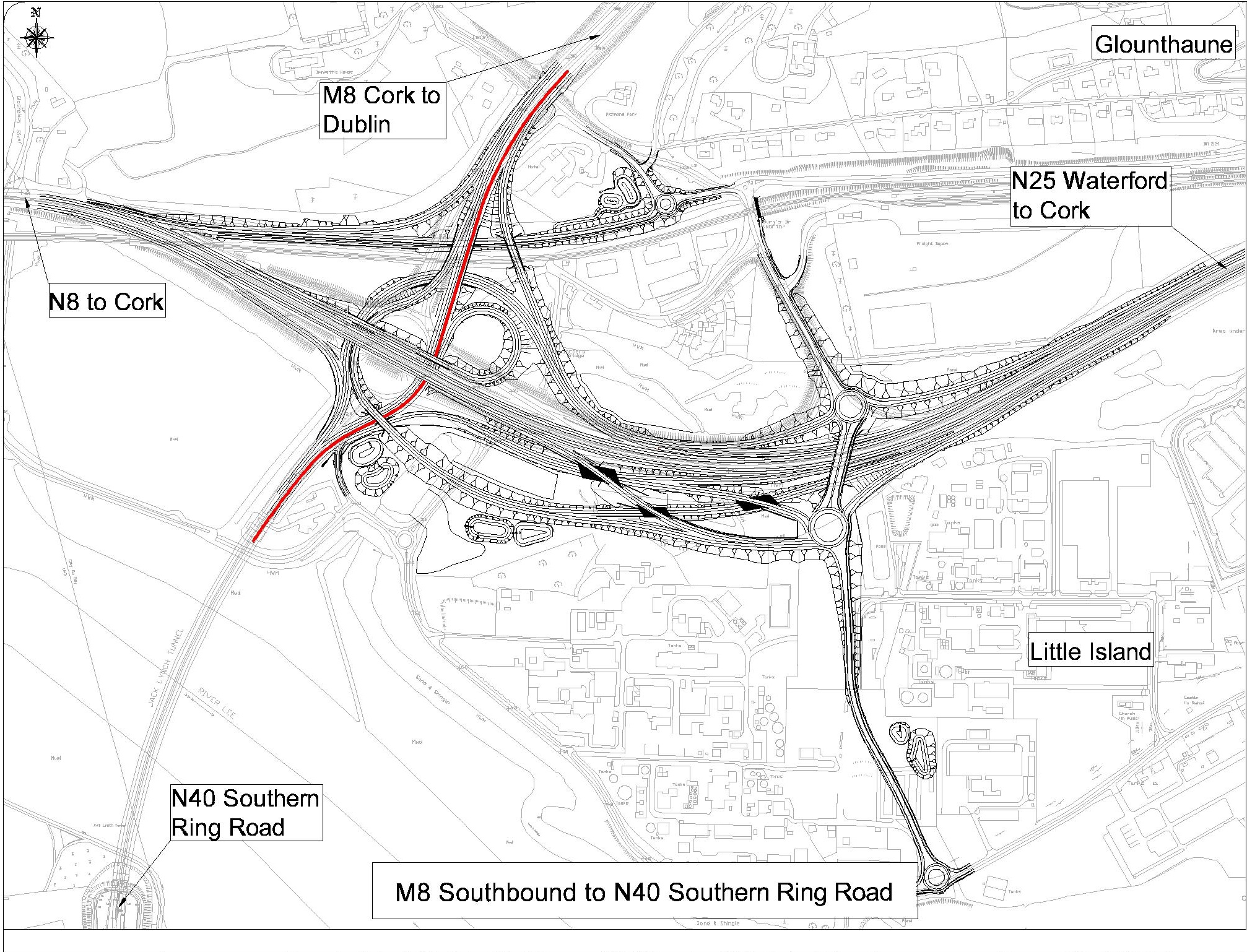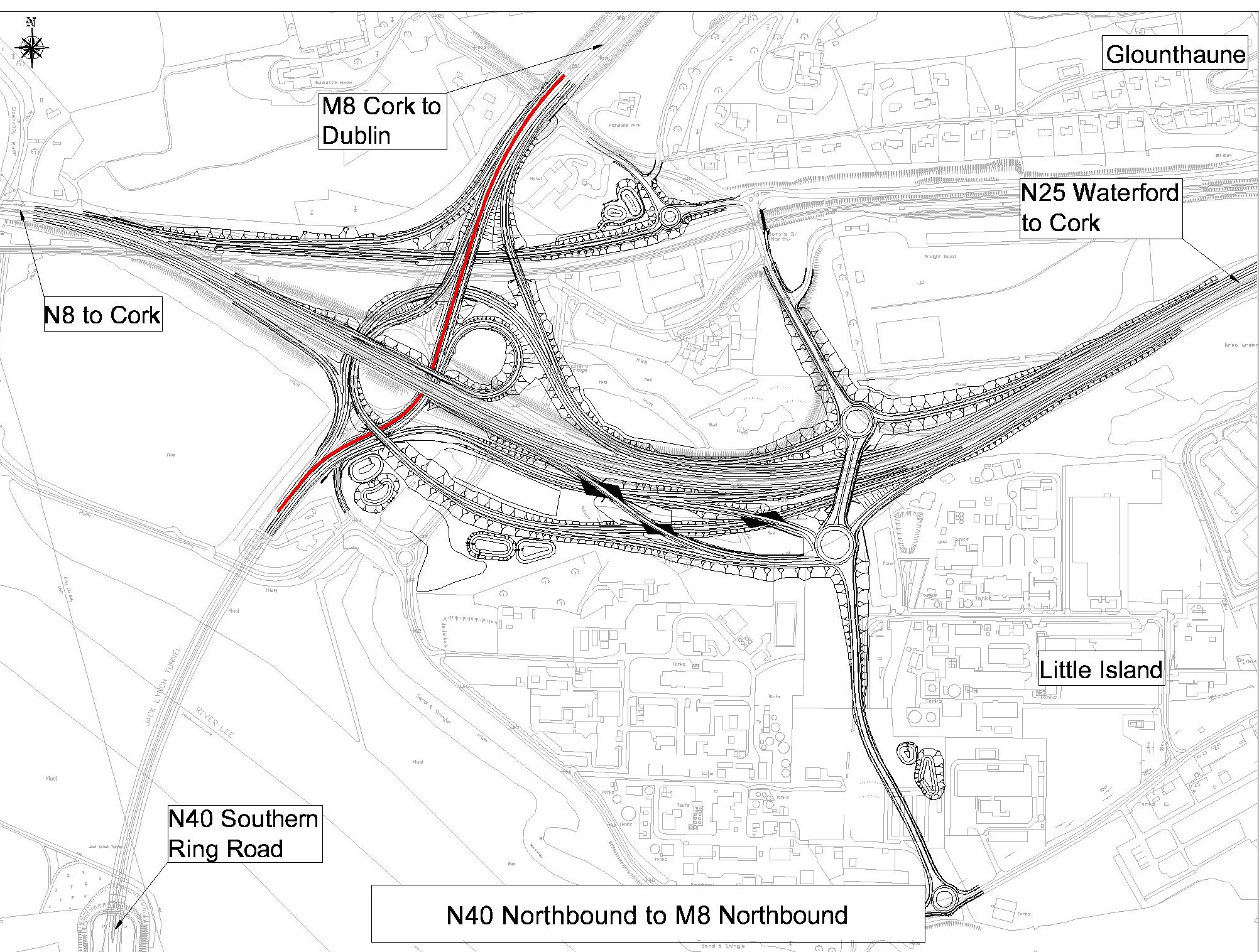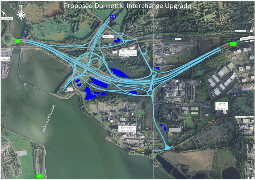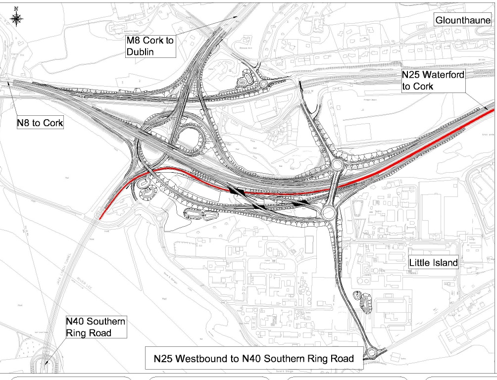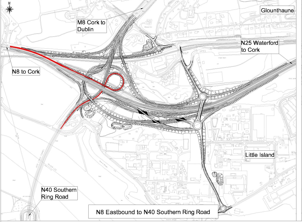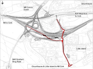 - A series of direct road links between the N8, the N25 and the N40 and links to the R623 Regional Road in Little Island and Burys Bridge in Dunkettle;